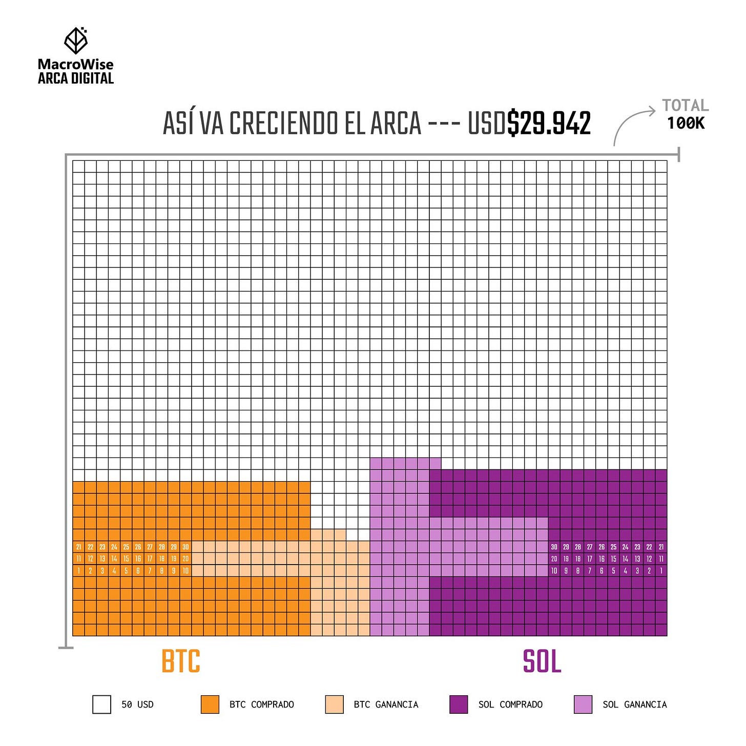 El Arca Digital tiene una estrategia simple: Comprar mensualmente y promediar la volatilidad. Esto da las herramientas y el contexto para modular la emoción y seguir en el juego con convicción. Exige coraje, paciencia y comunidad.
