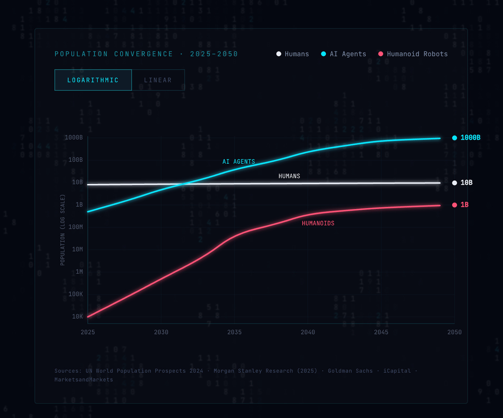 Los expertos proyectan que para 2050 podríamos tener casi mil millones de robots físicos caminando entre nosotros. Pero eso es solo lo que podemos ver.