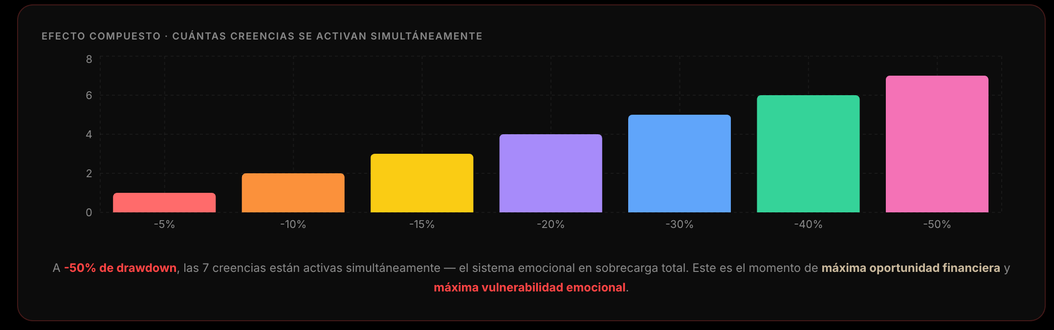 A -50% de drawdown, los 7 sesgos están activos simultáneamente.