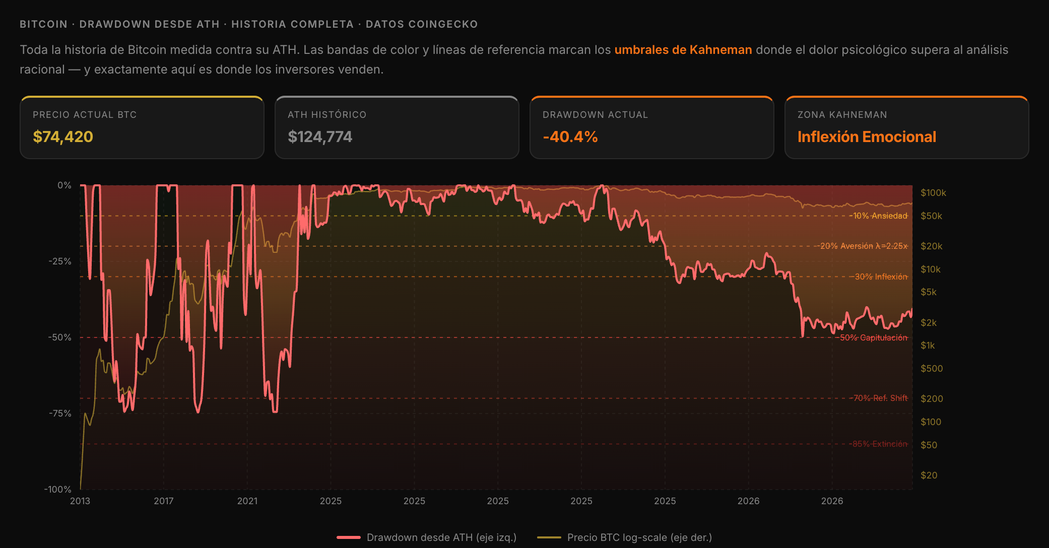Kahneman & Tversky, 1979 · Premio Nobel de Economía 2002 Umbral: -5% · Intensidad: 88/100
